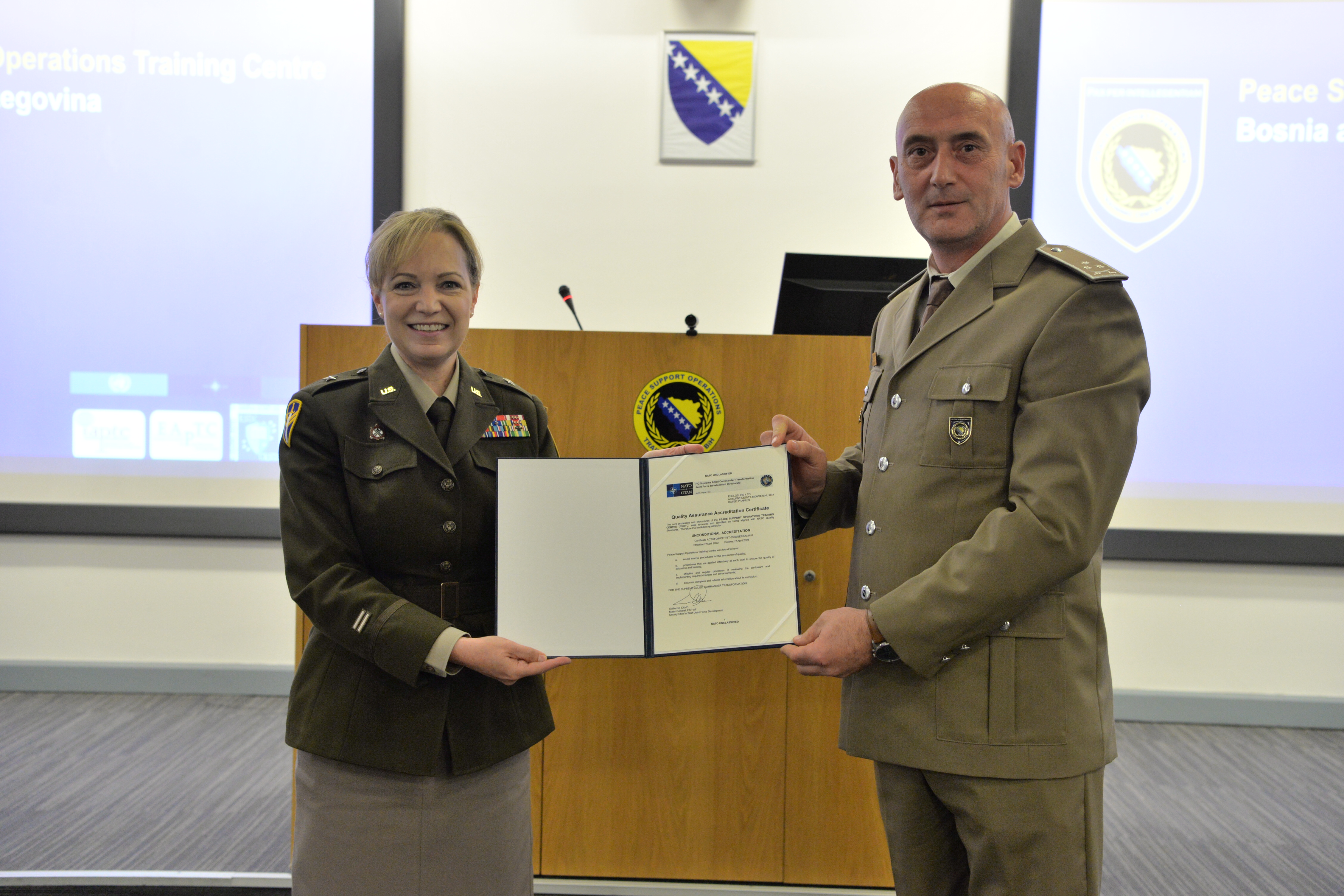 Today 18 MAY 2022, high officials of the MoD and AF BiH, NATO HQ SA and partner countries gathered at Peace Support Operations Training Center (PSOTC) for the the Ceremony of the NATO Accreditation for Quality Assurance in Training and Education. PSOTC has been institutionally re-accredited, which confirms that PSOTC as an institution carries out its education and training tasks for the needs of peace support operations in accordance with NATO quality standards in this area.