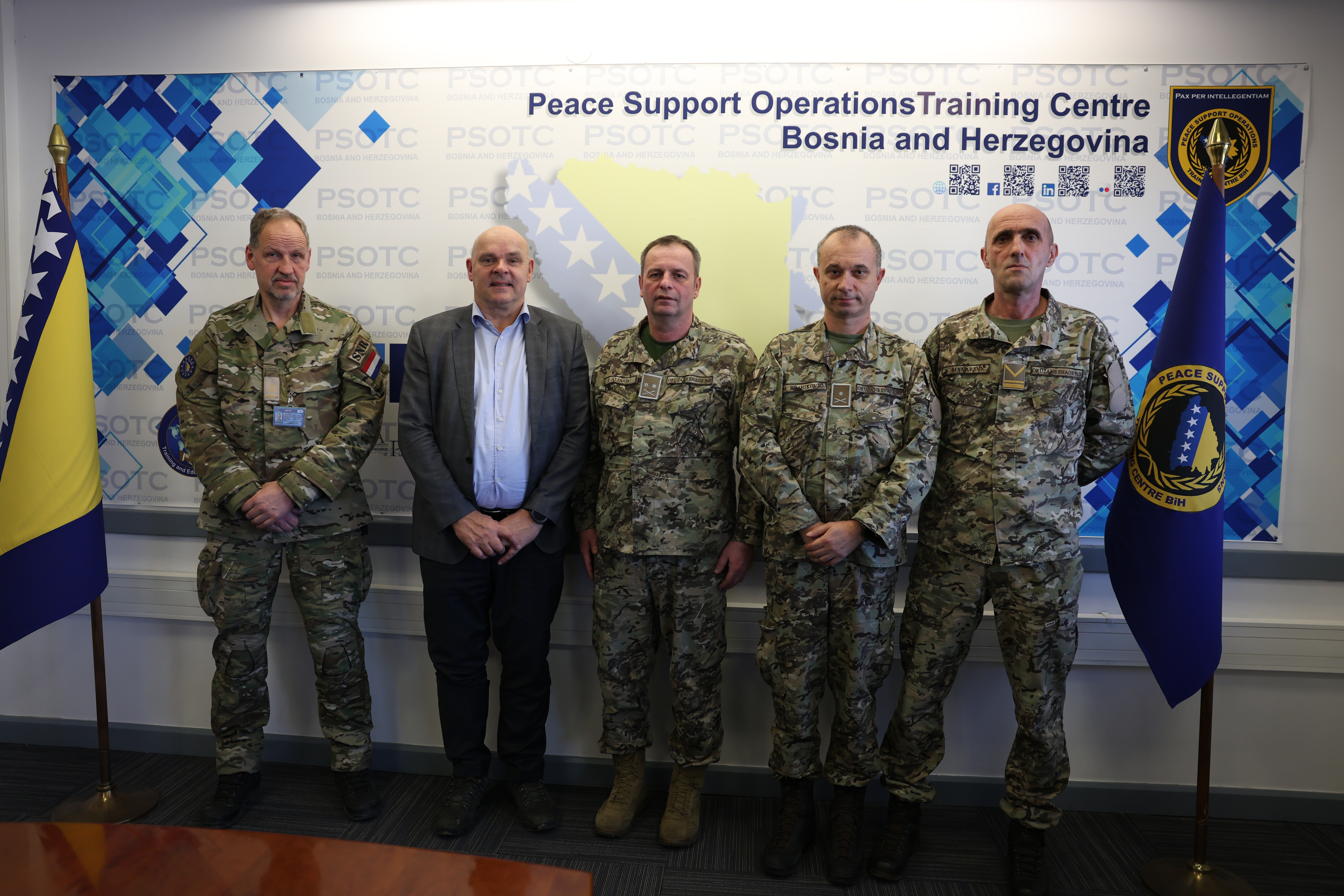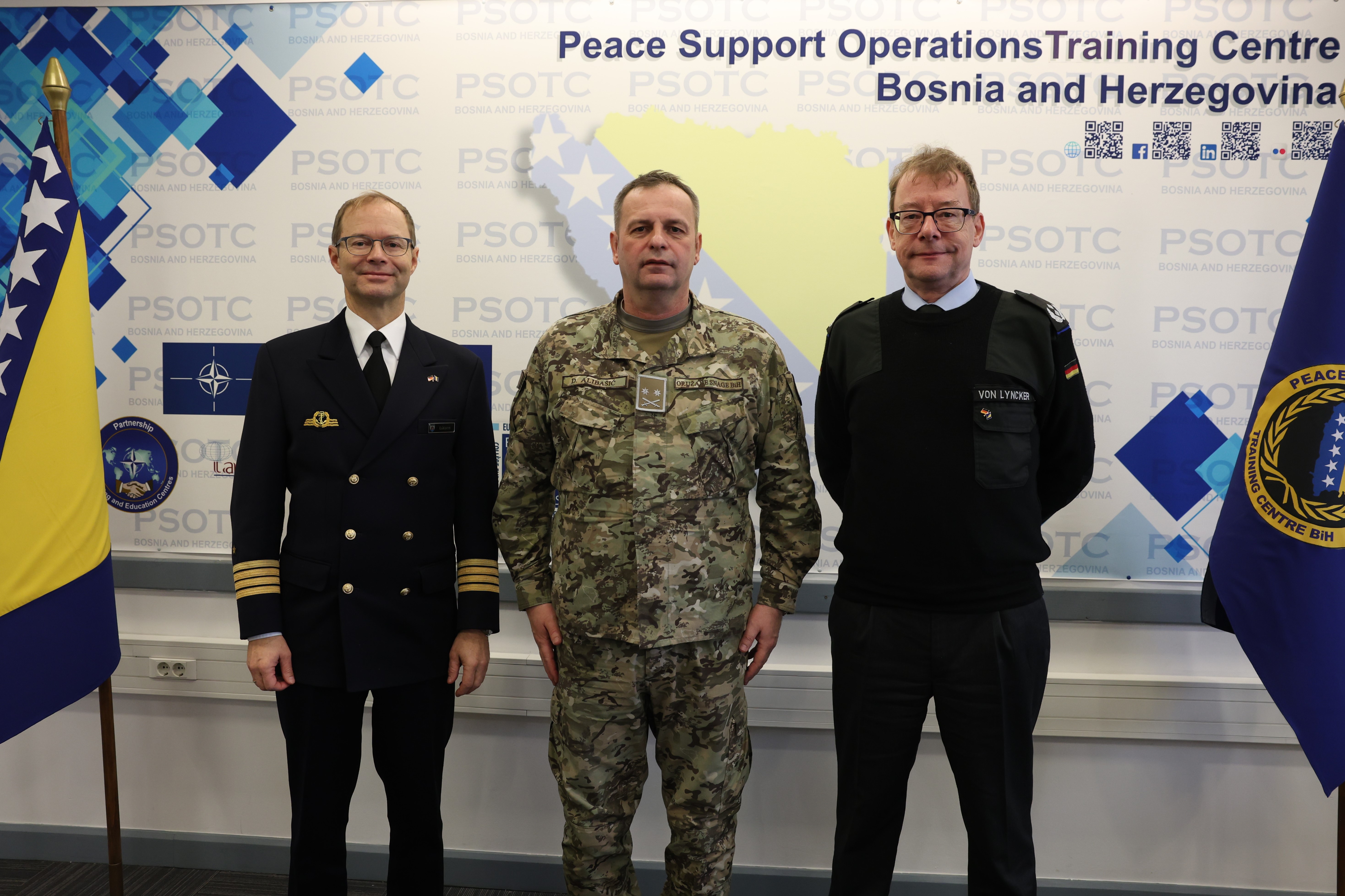 Today, January 31, 2025, the Netherlands (NLD) Defence Attaché (DA) in Bosnia and Herzegovina, Colonel Bob Segaar, accompanied by Lieutenant Colonel Henry Van Der Broek, the NLD Senior National Representative (SNR) in the EUFOR ALTHEA Mission, met with the PSOTC Commandant, Lieutenant Colonel Damir Alibašić.