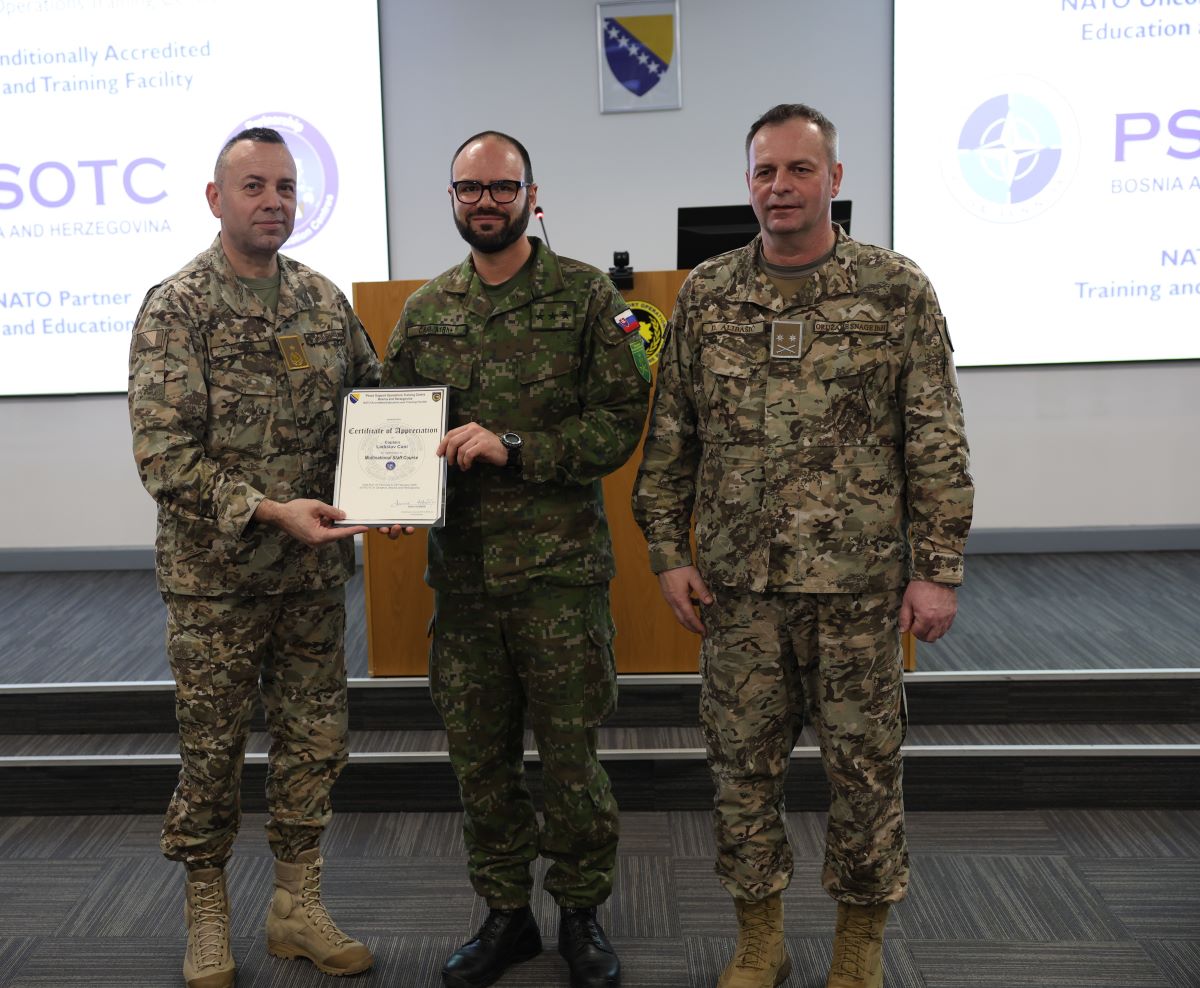 The Peace Support Operations Training Centre (PSOTC) of the Armed Forces of Bosnia and Herzegovina (AF BIH) proudly marked the conclusion of the Multinational Staff Course on 28 February 2025 during an official closing ceremony.