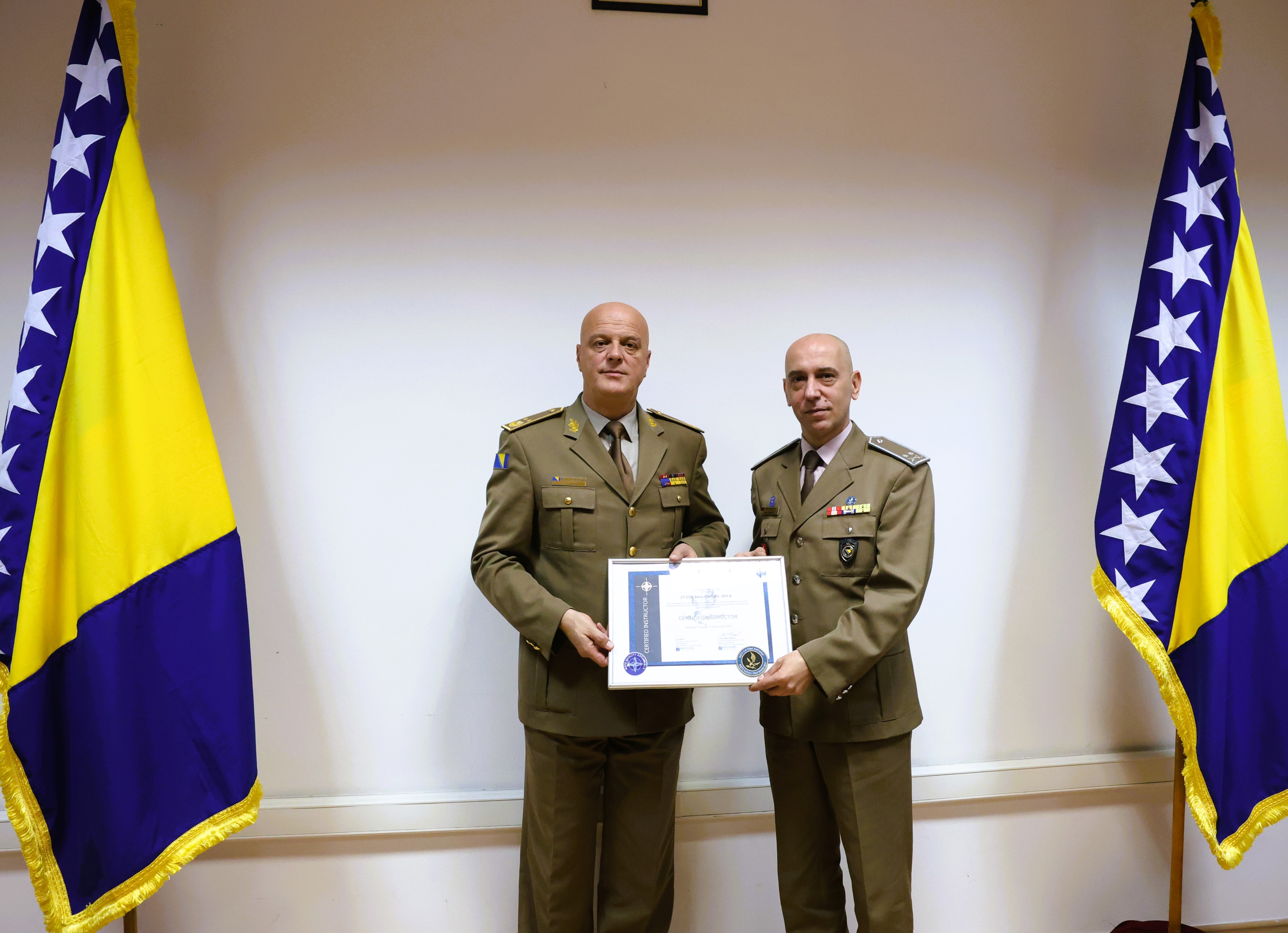 On December 26, 2024, a reception was held at the Joint Staff of the Armed Forces of Bosnia and Herzegovina (AF BiH) to recognize members who achieved significant accomplishments over the past year. Among those honored was Lieutenant Colonel Amer Riković, a distinguished Peace Support Operations Training Centre (PSOTC) member, who received a certificate confirming his status as a NATO Certified Instructor.