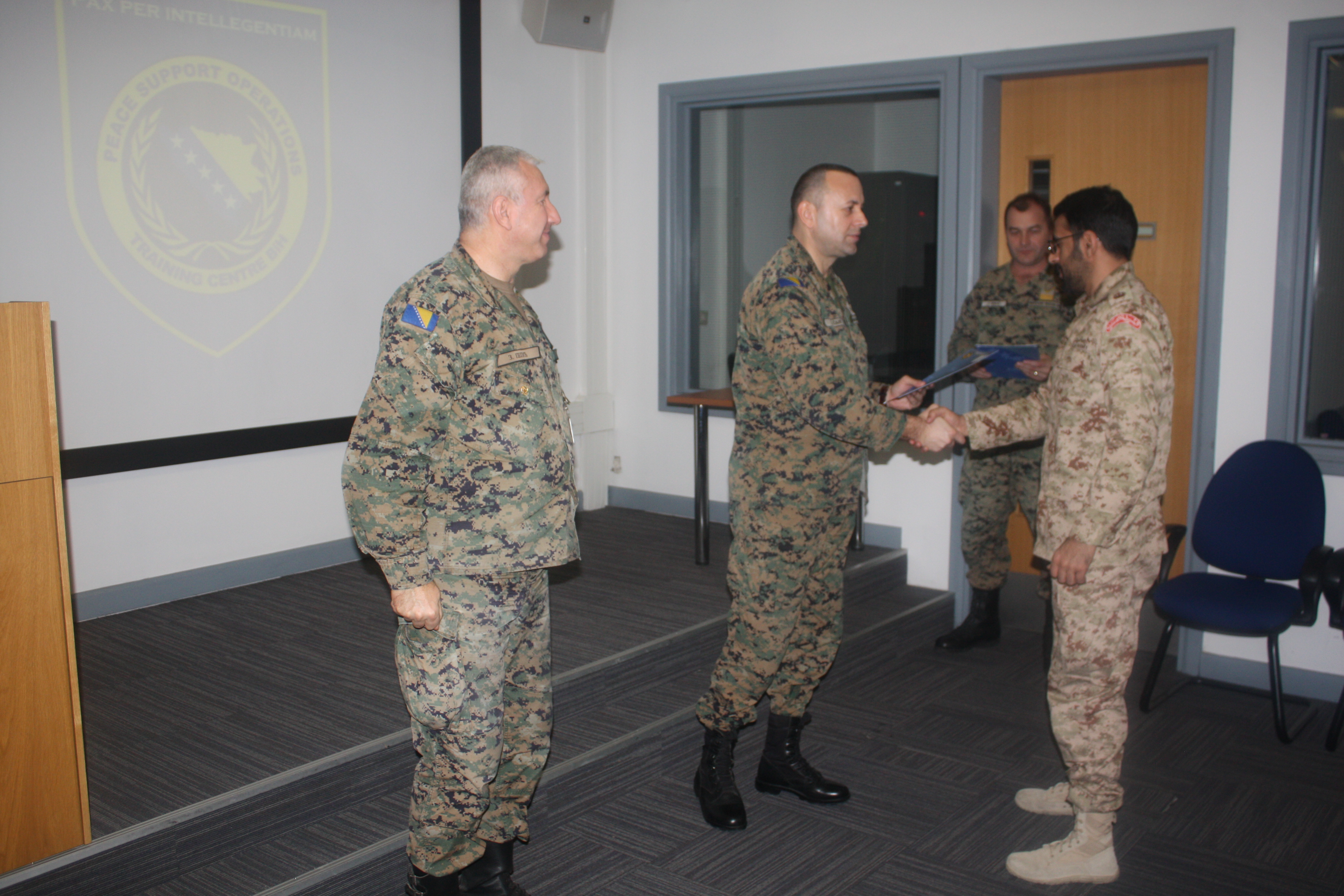 On 7th February 2018, the PSOTC hosted a consultative meeting with the Ministry of Defense of Bosnia and Herzegovina delegation consisting of the Assistants Minister of Defense for International Cooperation, Policy and Plans, and Personnel Management accompanied by their staff and representatives of the Joint Staff of Armed Forces of Bosnia and Herzegovina.