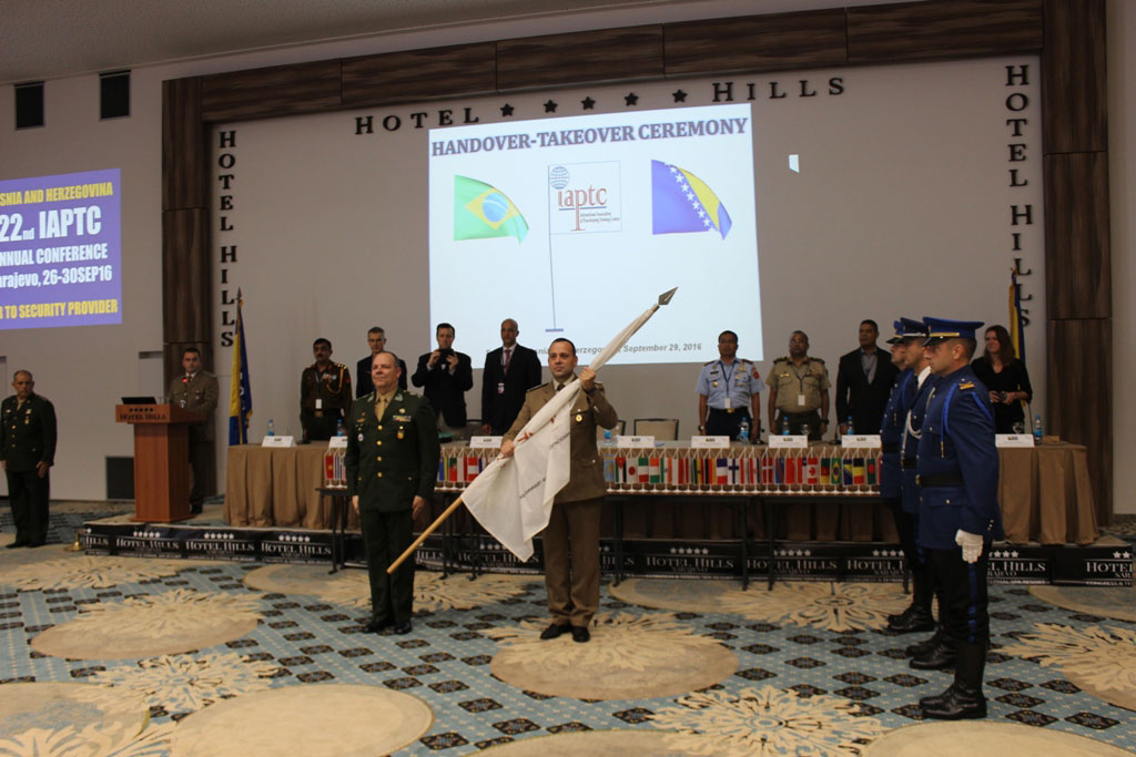 After a successful four days of work, on 29th September 2016, at the hotel "Hills" Ilidža, 22nd IAPTC Annual Conference has completed by ceremonial handover of Association’s flag. Bosnia and Herzegovina has officially taken over the presidency of the Executive Committee of the Association for the following year. The Conference brought together 203 military, police and civilian experts in the field of training for peacekeeping from 56 countries and over 130 organizations from the all around the world.