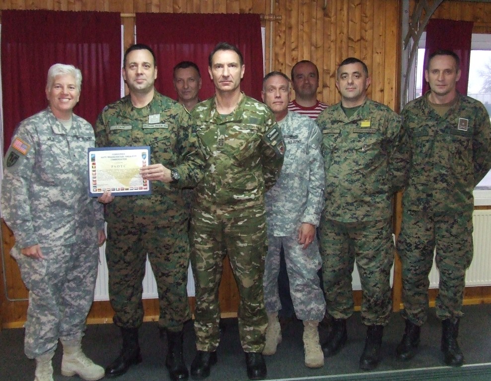Today, on 9th December 2015 the NATO HQ Sarajevo Commander, BG Giselle M. Wilz presented a commendation letter to PSOTC on the small ceremony organized by NATO HQ Sarajevo in Camp Butmir