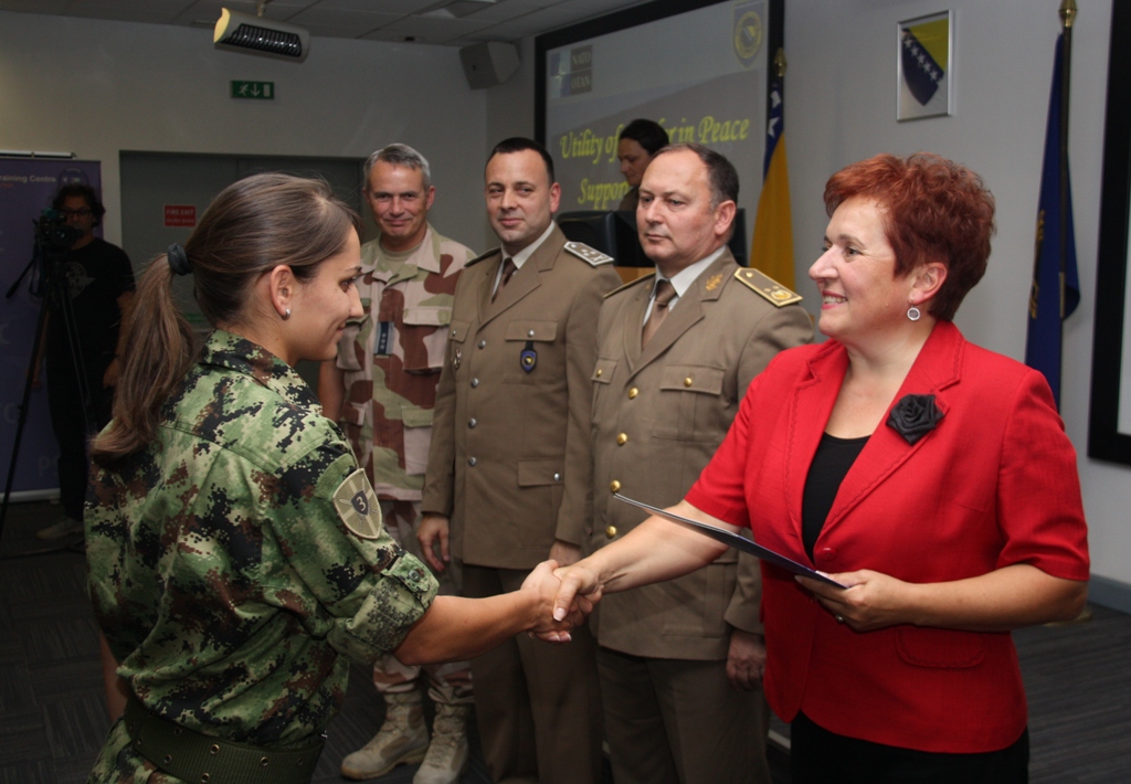 Today, 19.09.2014. the Utility of Gender in PSO Course has come to the end with the ceremony magnified by the presence of the Deputy Minister of Defense BiH, Ms. Marina Pendeš, Deputy Chief of the Joint Staff of the Armed Forces BiH, MG Mirko Tepšić, Deputy Commander/NATO HQ Sa, COL Ole-Asbjørn Fauske, Mr. Zoran Šajinović, Assistant Minister for International Cooperation MoD BiH, Ms. Ankica Tomić, International Cooperation/Ministry of Security BiH, and Ms. Dijana Čampara, Action Officer for PfP Partnership Goal in MoD BiH: “Gender equality in defense sector”